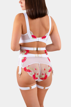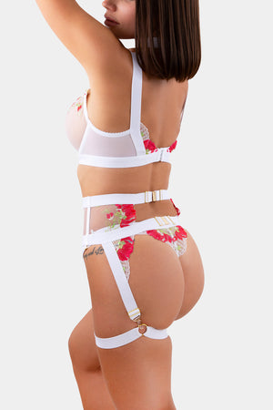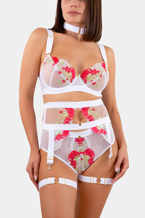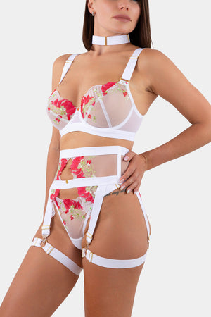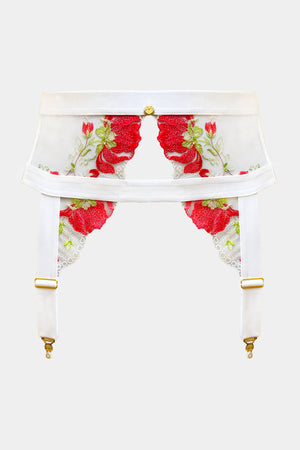 The stylish garter belt made from embroidered lace with a bright floral motif will hide imperfections and beautifully accentuate any figure. Adjustable in the back for comfortable wear.