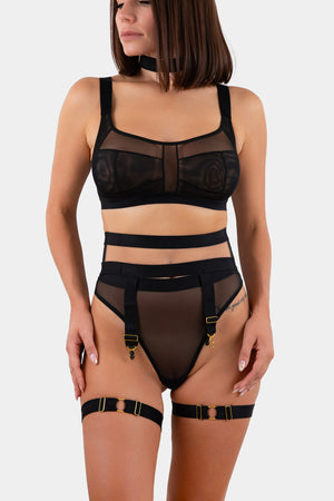 Fashion garters are decorated with gold accessories. It can also be worn like a checker around the neck.