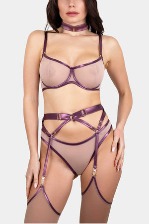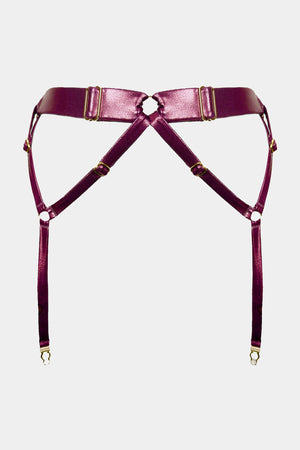 Fashion suspender belt for stockings made out of elastic ribbon with shiny effect and golden sliders for length adjustment (nickel free).