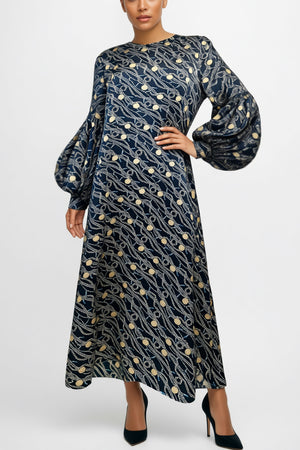 Dress crafted from 100% natural printed silk, designed for those who appreciate refined elegance and exceptional quality. The lightweight, luxurious silk drapes beautifully over the body, enhancing the silhouette while providing an exquisite sense of comfort.