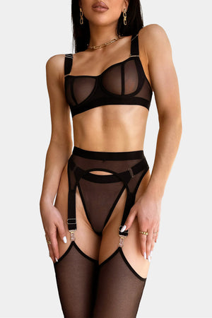 COFFEE LATTE - BLACK - SUSPENDER BELT
