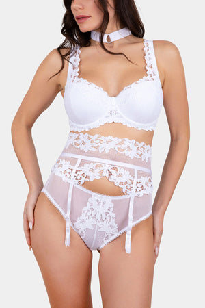Garter belt made out from Italian stretched lace with floral motive. Hook-and-eyes closure at the back in 2 positions for maximum comfort and perfect fitting. Stocking holders are conveniently and quickly attached to stockings or garters, the length is adjustable.