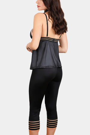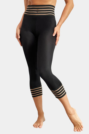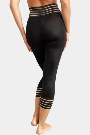 Stylish leggings made out of thick elastic fabric that softly fits your body, with striped mesh details.
