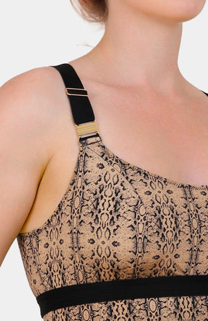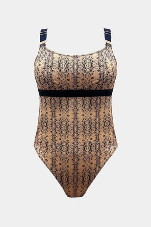 This swimsuit is designed for those who appreciate a blend of elegance and character. The striking snake print adds depth to the look, while the dense, elastic fabric gently follows the silhouette without restricting movement. The contrasting band under the bust highlights the line and creates a refined accent, and the adjustable straps ensure a comfortable and precise fit.