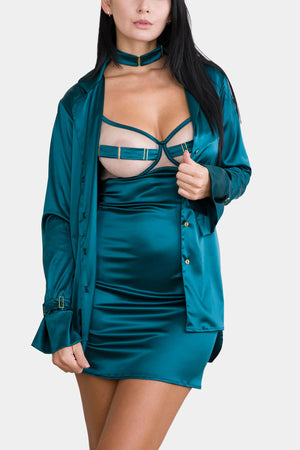 Shirt made out of silky satin with stretch (premium class) and golden buttons. Silky satin is soft and light to the touch - which makes it a perfect combination of comfort and boldness!