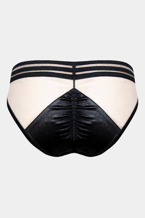 Panties with trendy geometry elements, made out of soft mesh and satin. Elastic striped mesh band. The drapery on the back gives a more comfortable fitting to the body.