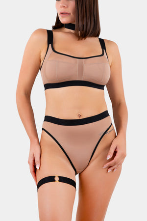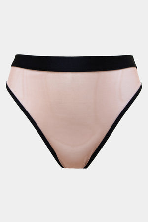 Fashion high-waisted briefs made out from a tan-coloured silky touch stretch mesh. The wider elastic tape on the top for more comfort fitting. Cotton gusset.