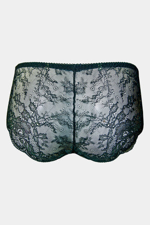 Classic panties made out of delicate elastic lace with a stunning shimmer glow. Cotton gusset. Drapery gives panties more comfort, exact landing on a figure.