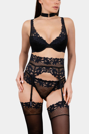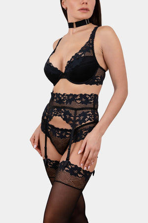 Bralette push-up bra with removable foam pads. The bra made out from Italian stretched lace with floral motive and decoreted of miniature satin roses on the center. Cotton to the body. Adjustable shoulder straps from 1.5 cm wide for more comfortable fitting.
