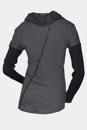A stylish fitted top made of soft cotton with Lycra, offering comfort and a flattering fit. The asymmetrical cut visually slims and enhances the silhouette, while delicate lace details around the neckline add elegance and femininity. A versatile piece suitable for everyday wear, office looks, or modern casual outfits.