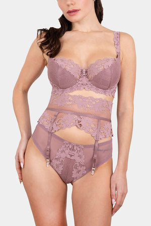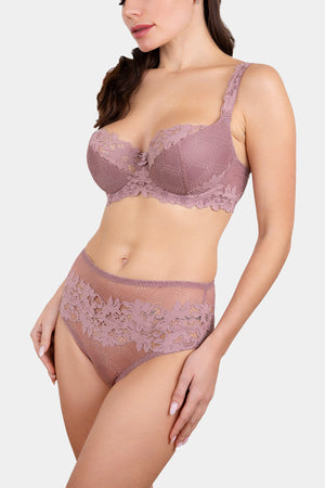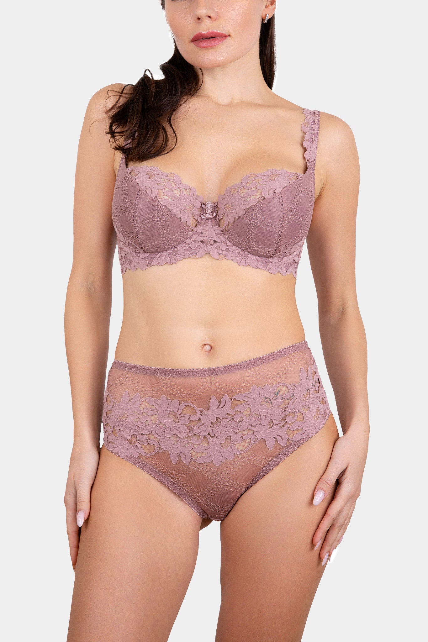 DANIELLA underwired semi foam bra made out from Italian stretched lace with floral motive and decorated of miniature satin roses on the center. The lace back lining of modular mesh for perfeсt fitting and great support. Adjustable shoulder straps from 1.5 cm wide for more comfort.