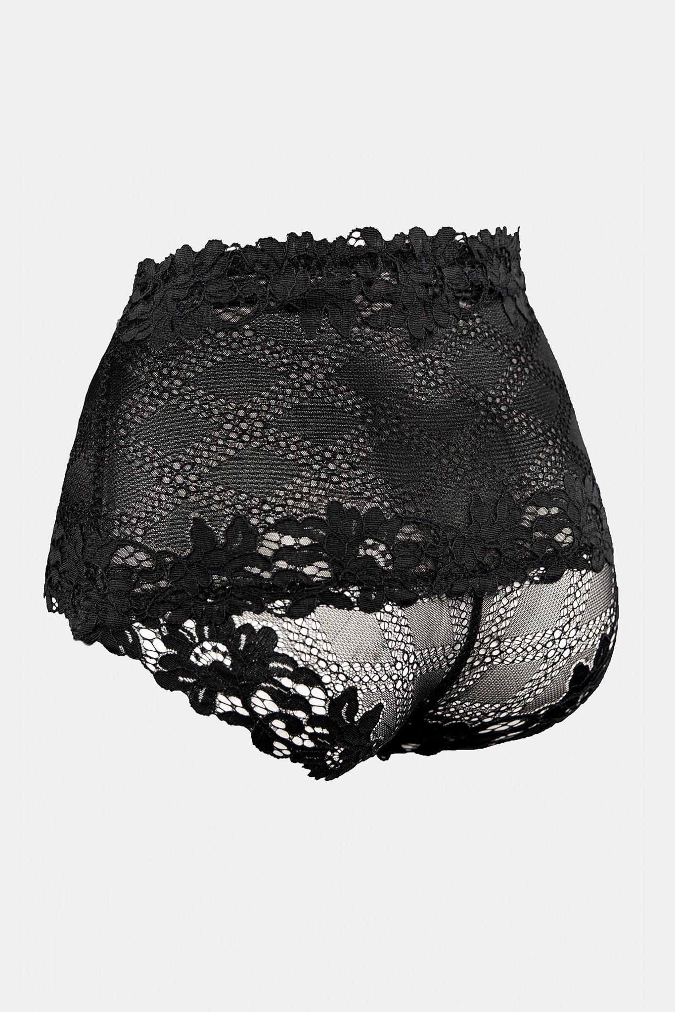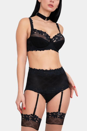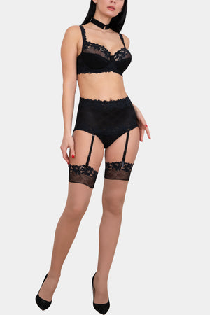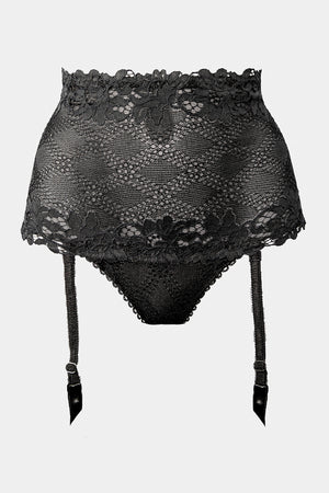 Daniella high-waisted panty made out from Italian stretched lace with floral motive. The panty have very comfortable fitting and invisible under clothing. The top of the panty is lining of modular mesh for maximum support and comfort. The holders for stockings are removable.