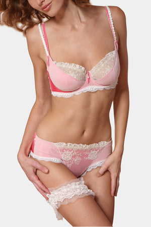 Soft-cup underwired bra crafted from premium Italian satin and adorned with exclusive voluminous French embroidery and lace. The soft cups provide natural shaping and gentle support, creating a beautifully feminine silhouette.