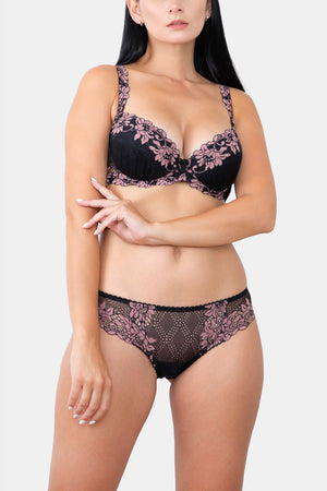Bestsellers Daniella push-up krūšturis ar izņemamiem polsterējumiem, kas izceļ dekoltē un veido skaistu, paceltu siluetu. Izgatavots no elastīgām mežģīnēm ar ziedu rakstu, rotāts ar miniatūrām satīna rozītēm centrā romantiskam akcentam.