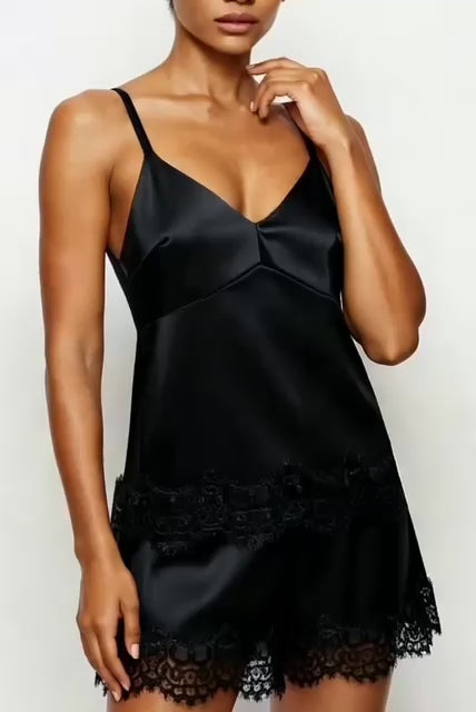Milady melns kimono no sieta un mežģīnēm ar Swarovski kristāliem