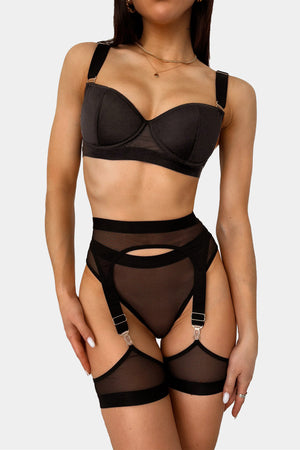 Moderns push-up krūšturis ar izņemamiem putu spilventiņiem, kas izgatavoti no zīdaini elastīga sietiņa. Regulējamas, platākas plecu lencītes ar zelta aksesuāriem lielākam komfortam. Oriģinālā muguras daļa ar otru regulējamu lenti uz aizdares stilīgam piegriezumam.