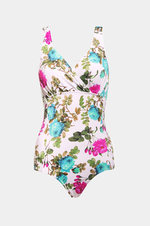 One-piece swimsuit with special microfiber foam cups. Large floral print.