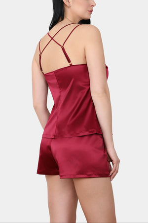 Šorti Luisa ir izgatavoti no mīksta, elastīga satīna ar vieglu spīdumu. Elastīgā jostasvieta nodrošina komfortablu piegulumu, bet regulējamās saites ļauj pielāgot šortus figūrai. Viegli un patīkami ādai, lieliski piemēroti gulēšanai, atpūtai un mājas valkāšanai.