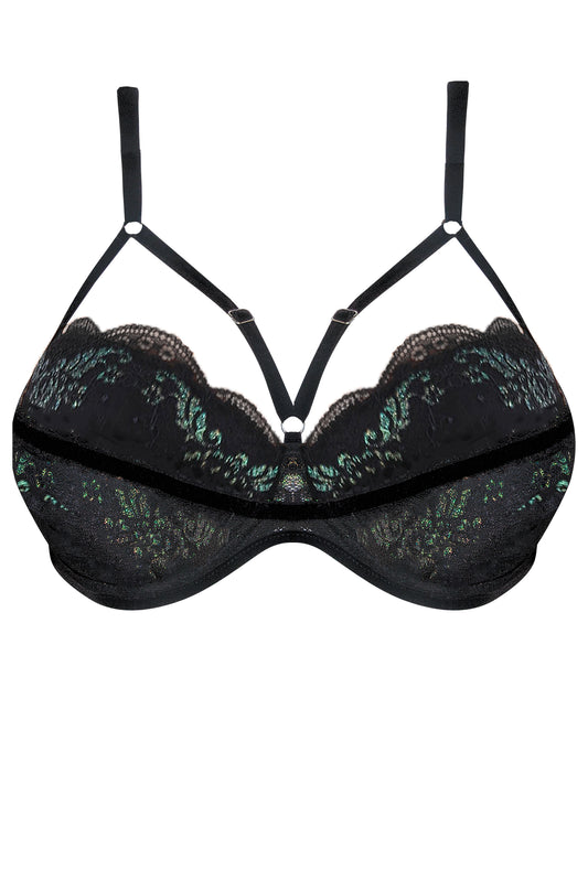 JACQUELINE - BLACK/GREEN - BRA PUSH-UP