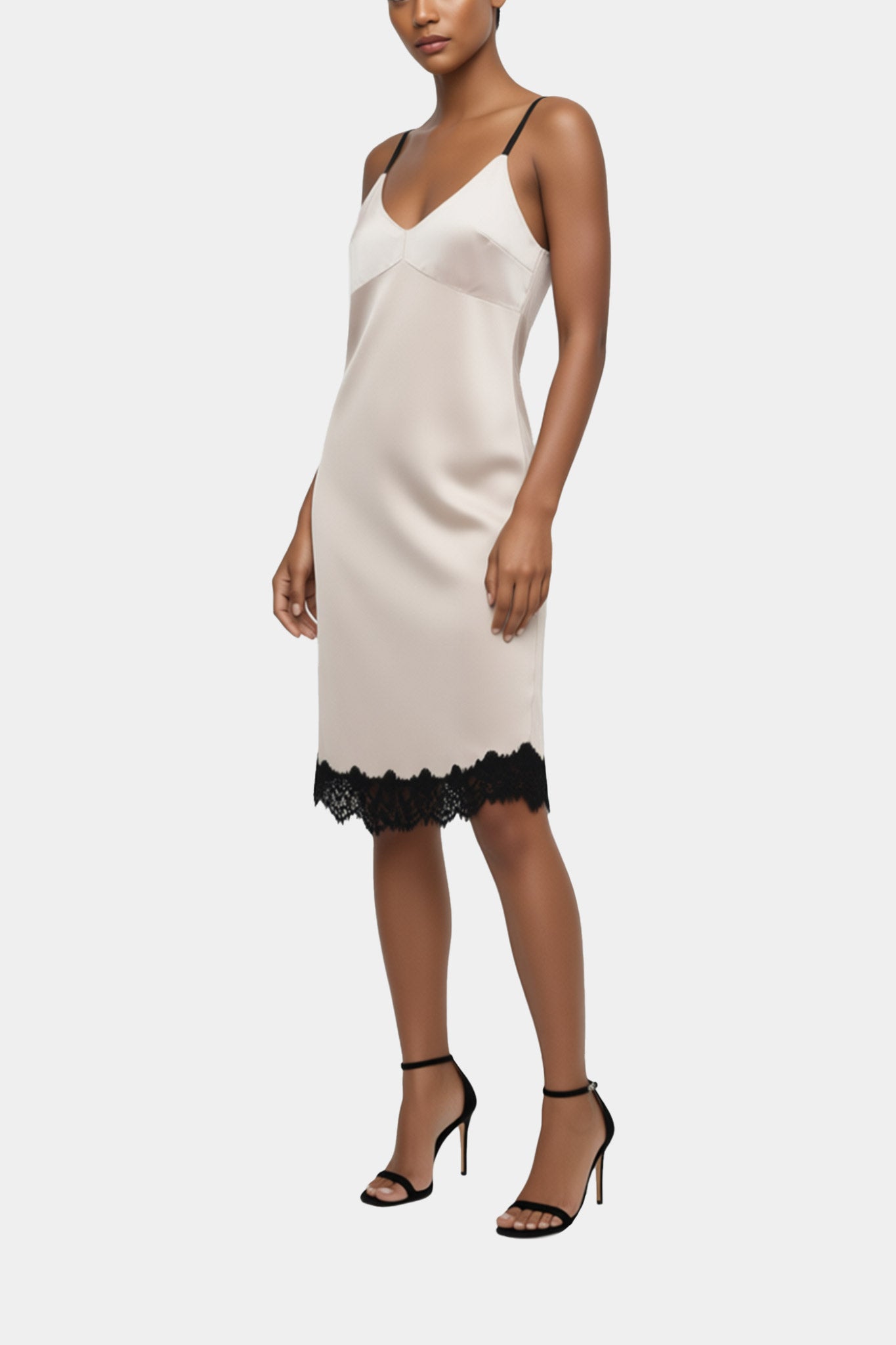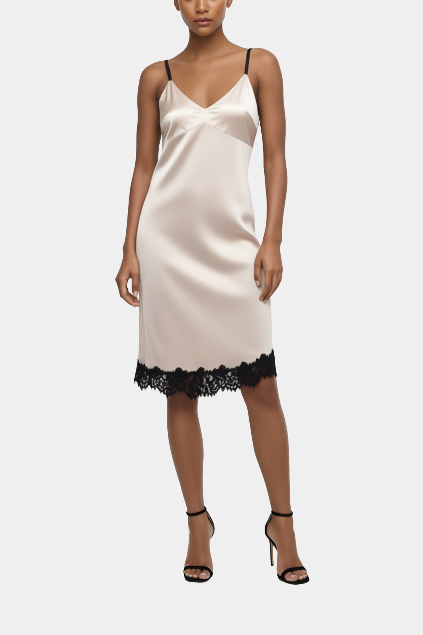 An elegant satin nightdress crafted for those who appreciate refined comfort and beautifully feminine loungewear. The smooth, delicate fabric glides softly along the silhouette, highlighting its natural grace, while the contrasting lace at the hem adds a touch of sophistication. Adjustable thin straps ensure a comfortable fit, and the relaxed shape makes this piece perfect for restful sleep and cozy evenings at home.