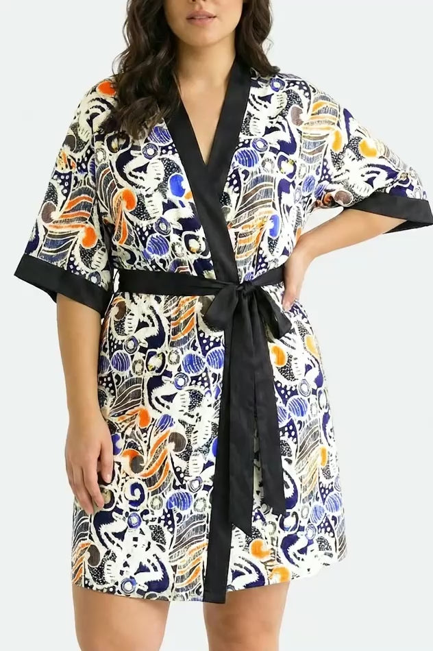 Catrina - Printed Microfiber Kimono Robe – Beach and Spa Cover-Up