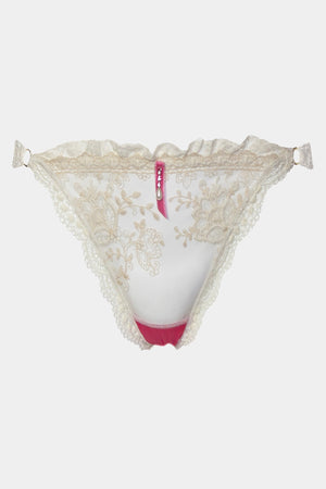 String made from Italian satin and exclusive French lace embroidery. Cotton gusset. Andrea is an erotic colletion.
