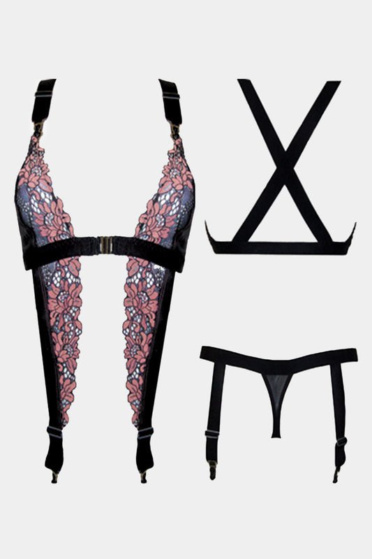 HENRIETTA - BLACK PINK - SUSPENDER BELT
