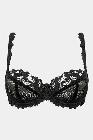 Underwire soft cup bra made out from Italian stretched lace with floral motive and decorated of miniature satin roses on the center. The lace back on the big sizes lining of modular mesh for perfect fitting and great support . Adjustable shoulder straps from 1.5 cm wide for more comfort. Vertical seam on the cups for a rounder bust. Perfectly fits on small and plus sizes.